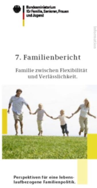 die das einkommensabhängige Elterngeld und den Ausbau der Tagesbetreung für die unter 3 jährigen auf den Weg brachten. Der 7.Familienbericht lieferte die theoretische Unterstützung